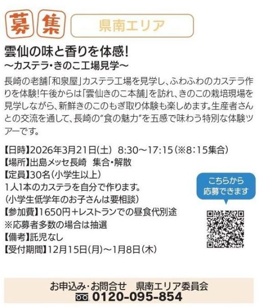 雲仙の味と香りを体験!~カステラ・きのこ工場見学~